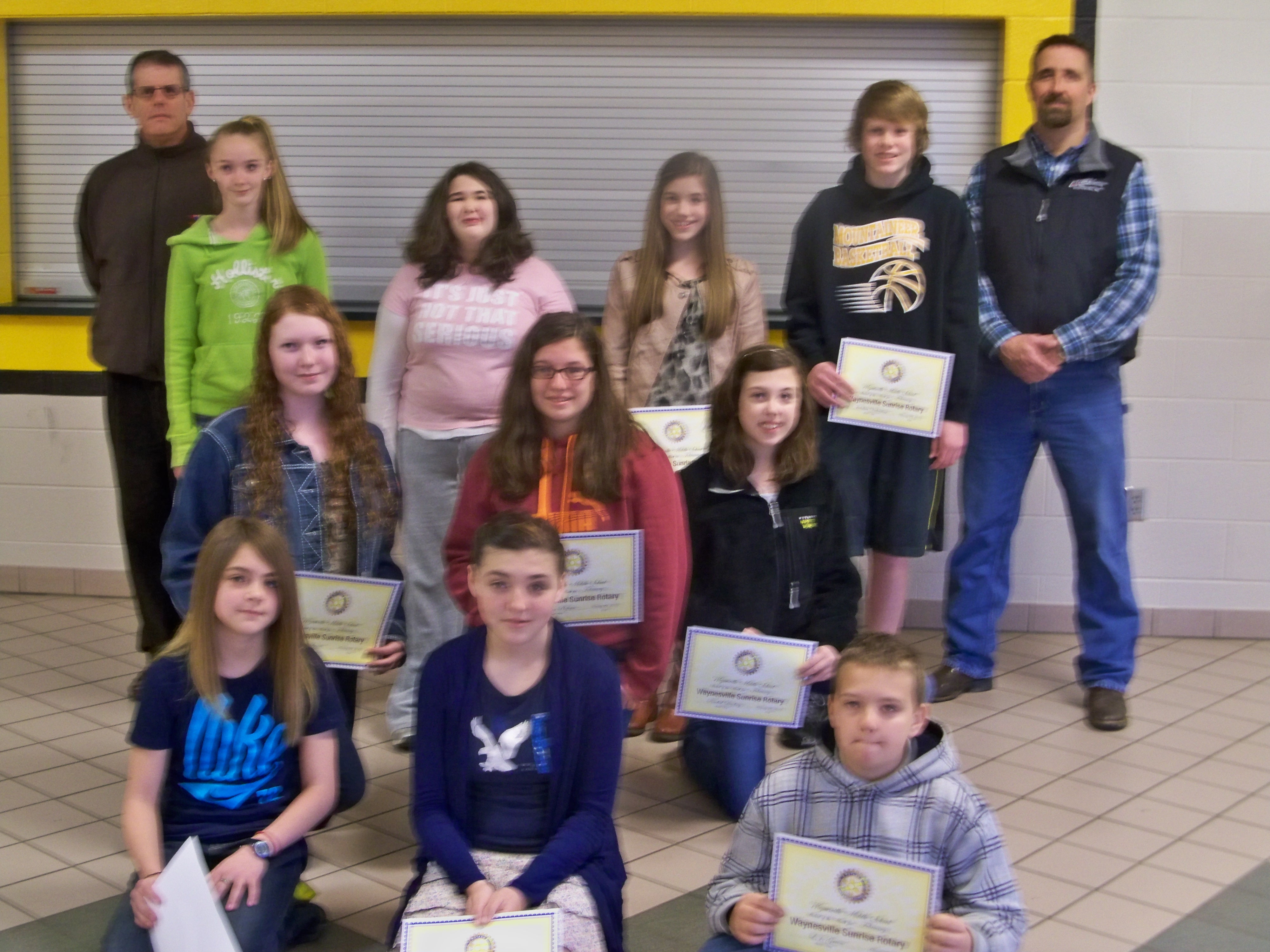 6th: Hannah L., Devan H., L.J. G. 7th: Sarah S., Allison P., Rachel L. 8th: Brooke T., Leah C., Jessica C., Jordan V. Rotarians: B. Kingshill and L. Clark